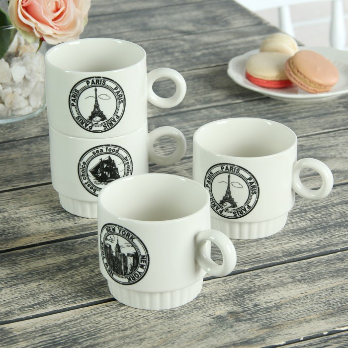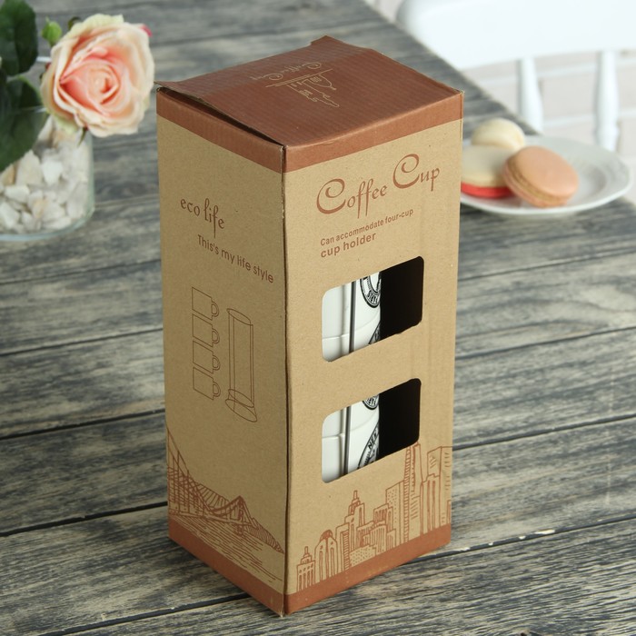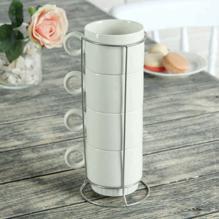 Набор кружек 240 мл "Во круг света", 4 шт, на металлической подставке