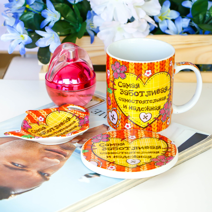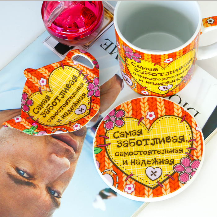 Не знаете, как порадовать девушку, носящую красивое имя Сашенька? Подарите ей этот оригинальный набор! Он такой же яркий и эффектный, как и его будущая обладательница. Набор состоит из кружки, подставки под горячее и подставки для чайного пакетика. Вместе с ним чаепитие или обед как дома, так и на работе подарят еще больше удовольствия, а сам набор порадует не только внешним видом, но и несомненным качеством.
