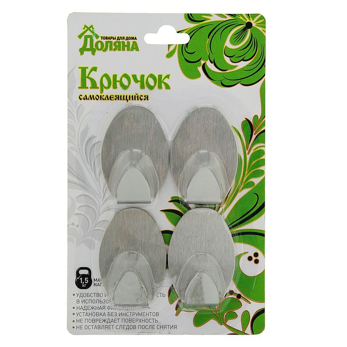 Набор крючков металлических на липучке, 4 шт "Овал"