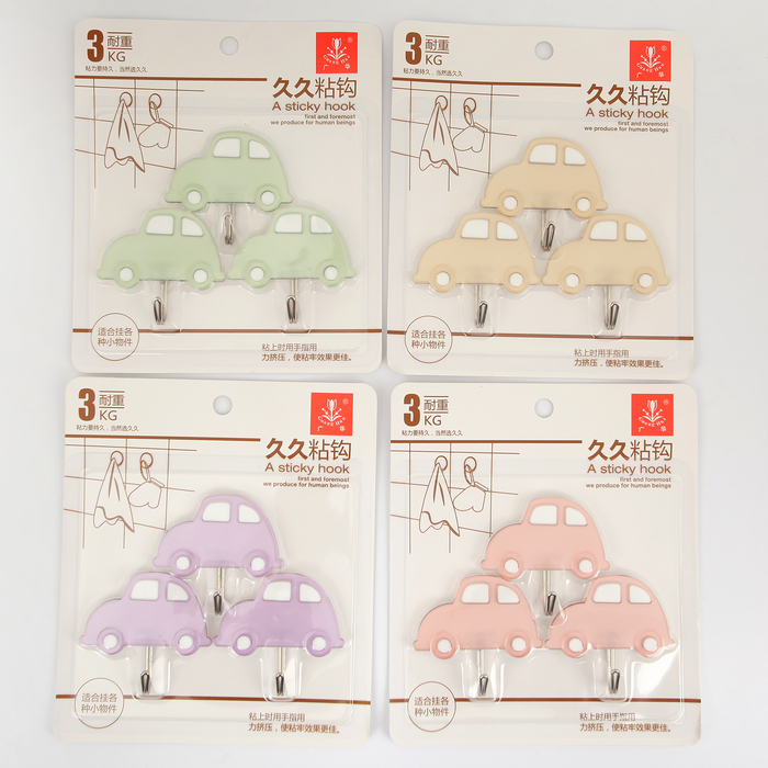 Набор крючков на липучке "Машинки" 3 шт, цвет МИКС