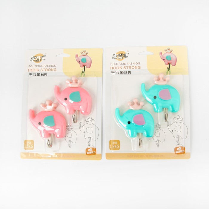 Набор крючков на липучке "Слоники" 2 шт, цвет МИКС