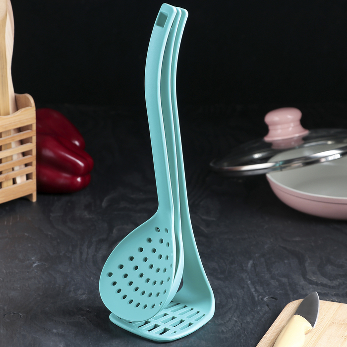 Набор кухонных принадлежностей "Трио" 33 см, цвет голубой