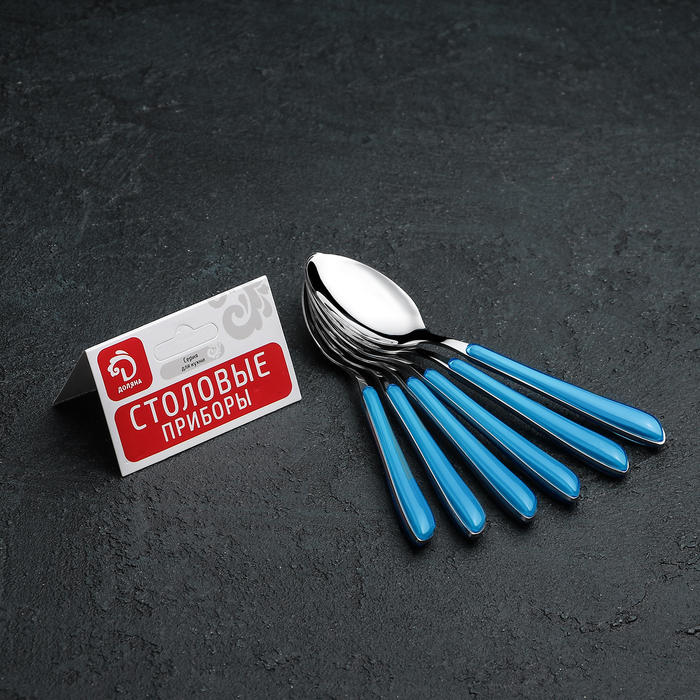 Набор ложек чайных 6 шт "Нео" синий, 14,5 см