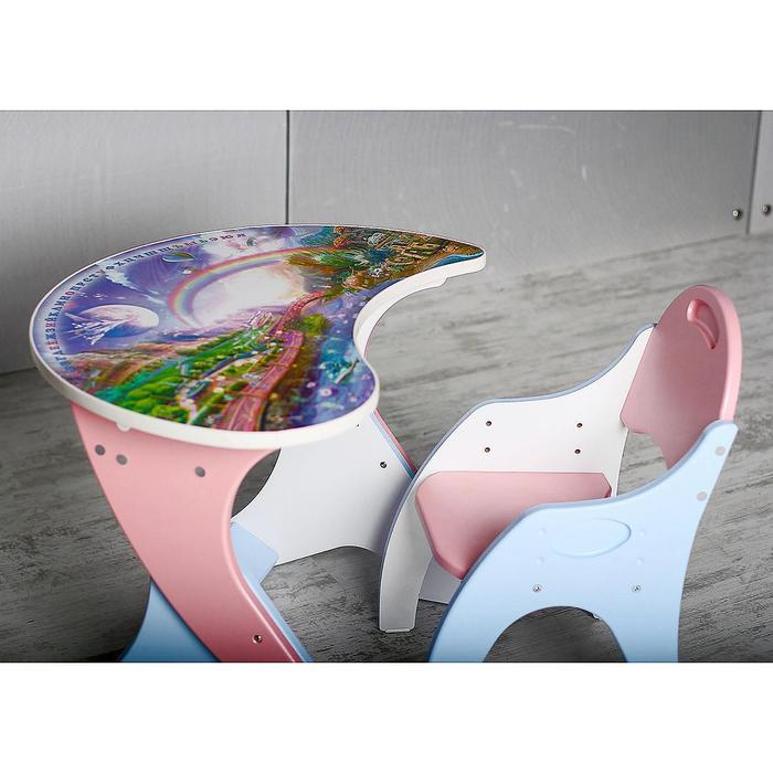 Набор мебели "Космошкола": стол-парта, стул. Цвет розовый-голубой