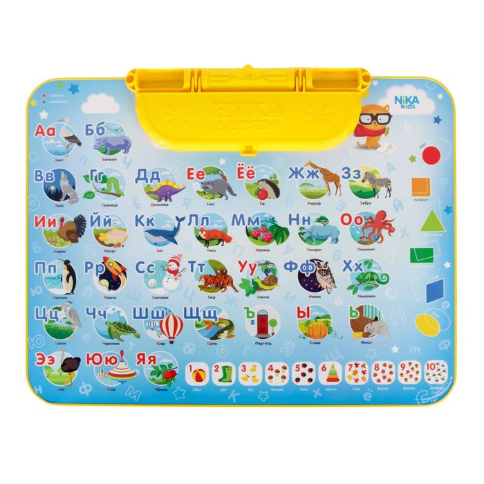 Набор мебели торговой марки Nika Kids — то, что нужно дошкольнику для занятий и подготовки к первому классу. На столешницу нанесён русский алфавит с ассоциативными картинками и цифры от 1 до 10. Рассматривая дидактические материалы, кроха запомнит буквы, научится считать и читать.