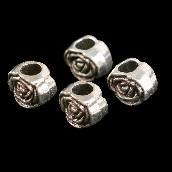Набор металлических бусин (4 шт) "Роза" серебро 1,2х0,2 см 10 гр