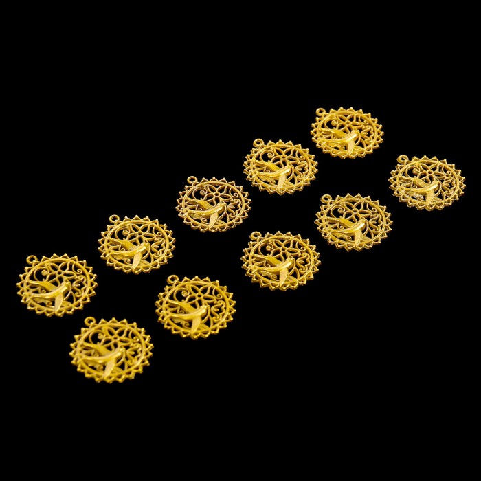 Набор металлических подвесок "Птичка в круге" 10 шт, 32,2х29 мм