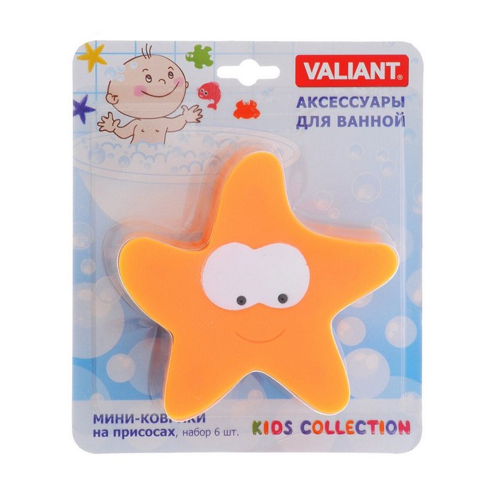 Набор мини-ковриков для ванной 6 шт "Звёздочка" на присосах, цвет оранжевый