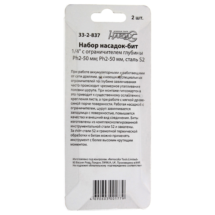 Набор насадок-бит Hobbi, с ограничителем глубины PH2-50 мм, 2 шт.