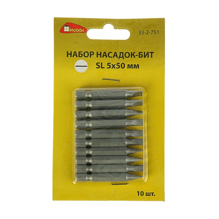 Набор насадок-бит Hobbi, SL 5,0х50 мм, 10 шт
