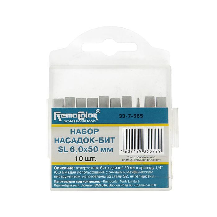Набор насадок-бит Remocolor, SL 6,0 х 50 мм