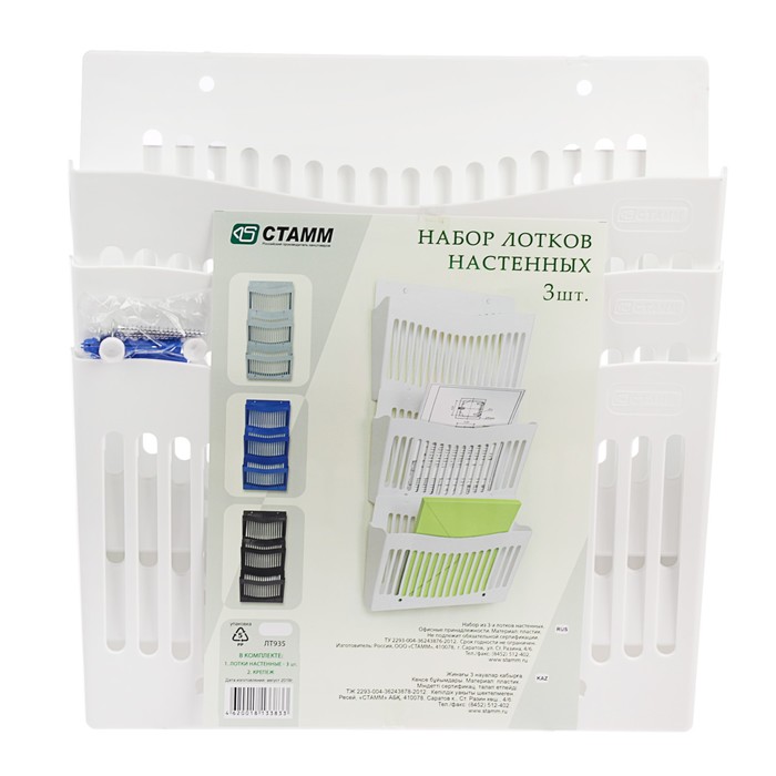 Набор настенных лотков для бумаг 3 штуки СТАММ, белый