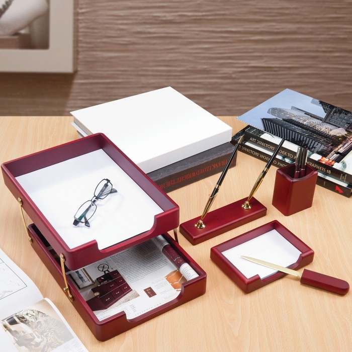 Набор настольный BESTAR Hercules, из дерева, 5 предметов, двойной лоток, красное дерево