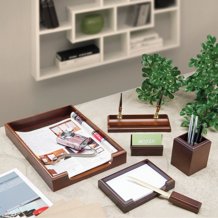 Набор настольный BESTAR Poseidon, из дерева, 6 предметов, лоток, орех