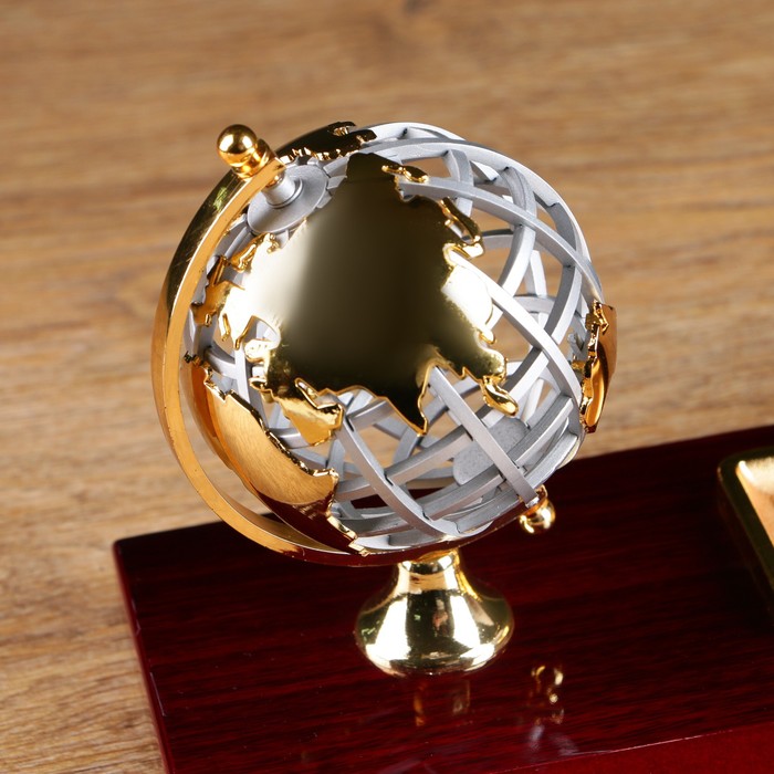 Набор настольный «Тёмное дерево»: глобус, подставка для ручек, лоток для скрепок