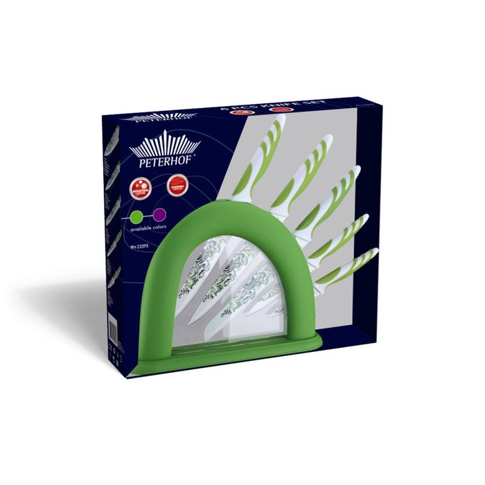 От качества посуды зависит не только вкус еды, но и здоровье человека. Набор ножей PETERHOF с силиконовыми ручками: для овощей, универсальный, хлебный, для филе, шинковочный, подставка, покрытие антибактериальное — товар, соответствующий российским стандартам качества. Любой хозяйке будет приятно держать его в руках. С нашей посудой и кухонной утварью приготовление еды и сервировка стола превратятся в настоящий праздник.