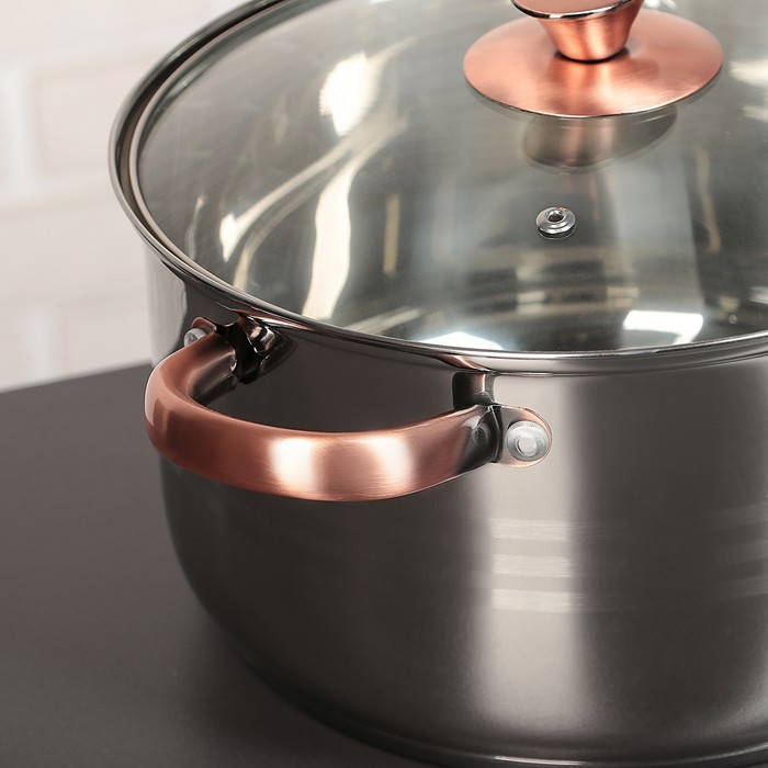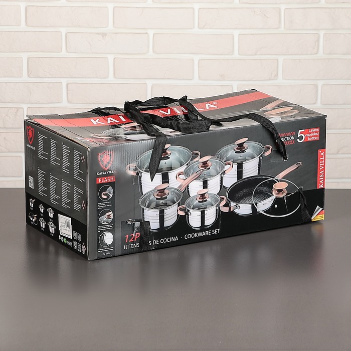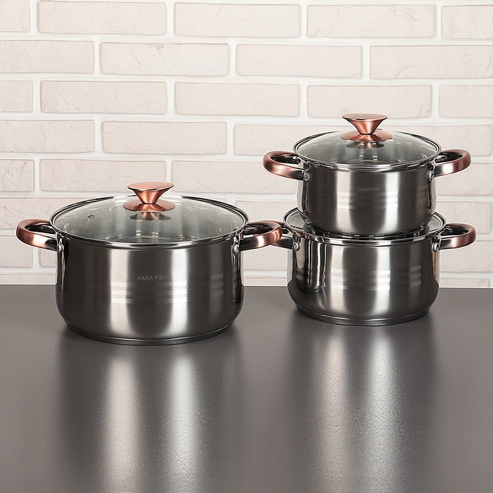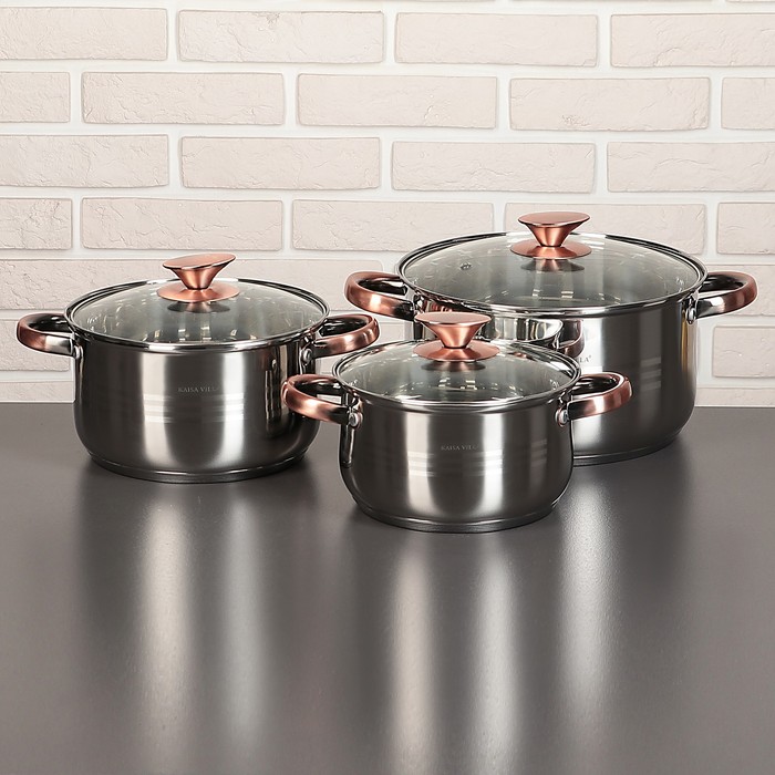 Набор "Омега", 6 предметов: кастрюли 1,9/2,7/3,6/6,1 л, ковш 1,9 л, сотейник с антипригарным покрытием 24х6,5 см, стеклянные крышки