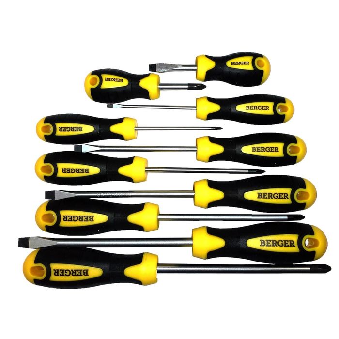 Стройте грандиозные планы, реализуйте свои идеи и не бойтесь знакомиться с новыми материалами и техниками. У вас всё получится, ведь у нас вы найдете инструмент как для бытового использования, так и для профессиональной деятельности. Может быть, Набор отверток BERGER, 10 предметов — это именно то, что вы всегда искали.