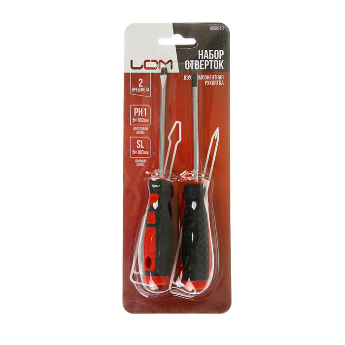 Набор отверток LOM, 2 предмета PH1 и SL5х100 мм (+/-), обработка полировка, двухк. рукоятка
