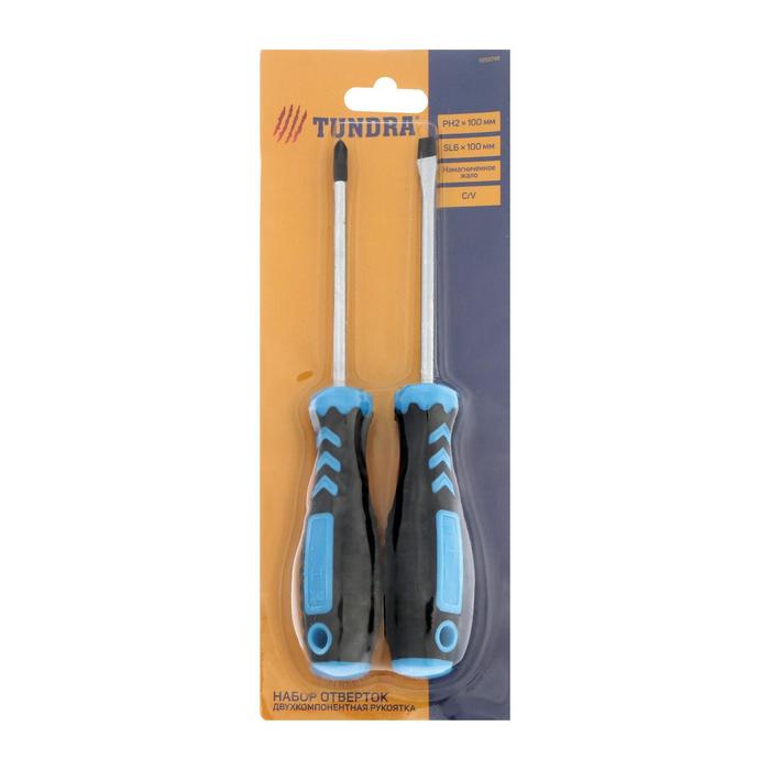 Набор отверток TUNDRA comfort, 2 предмета PH2 и SL 6х100 мм (+/-), сатин, двухком рукоятка