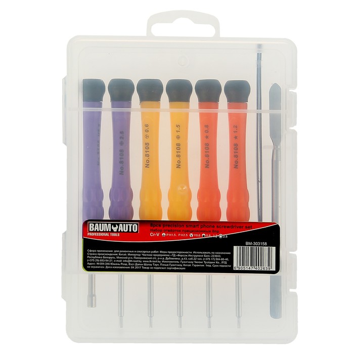 Набор отверток ювелирных BaumAuto, для точных работ, пластиковый футляр. 8 пр.