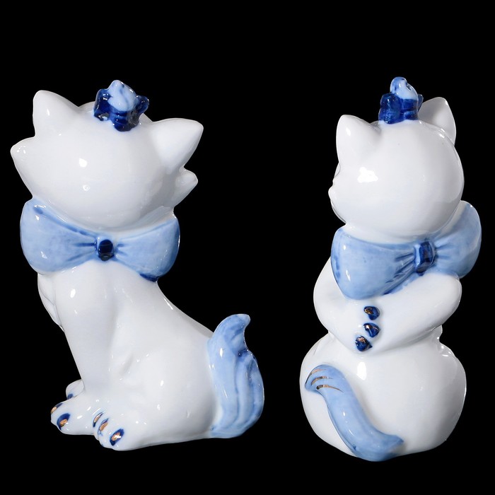 Набор «Озорные котята», 2 шт: 7х5х11,5 см, белый с синим, фарфор