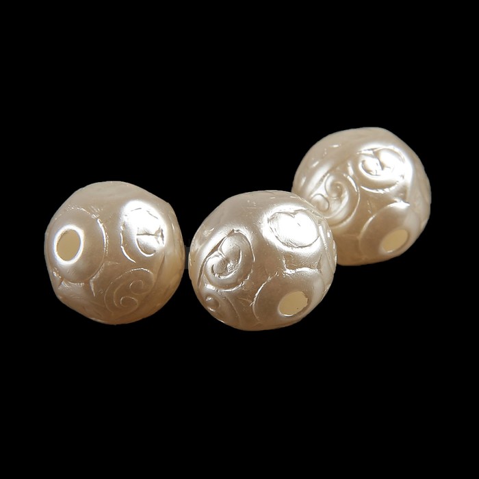 Набор пластиковых бусин "Жемчуг" круглые с орнамент., 10 гр, 1х1х1 см