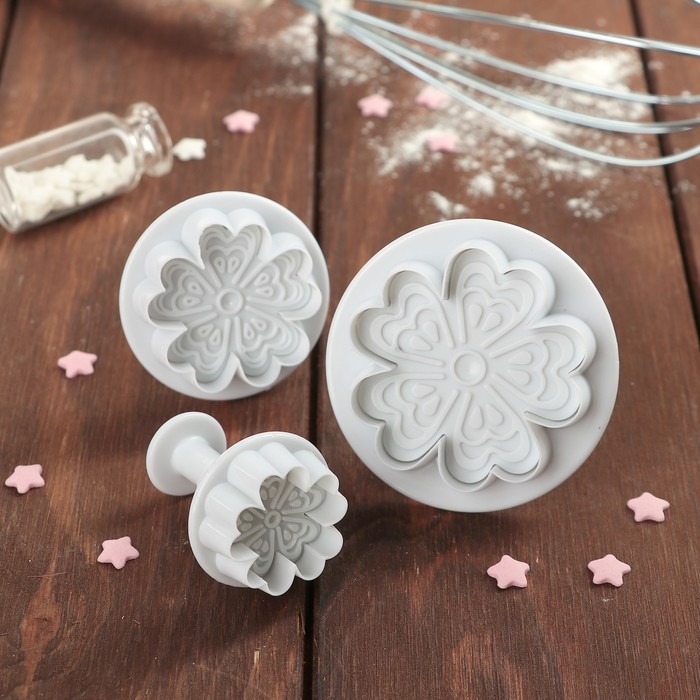 Набор плунжеров кондитерских "Сердечный цветок", 3 шт: 6,5х4,5/5,2х4,5/3,2х4,5 см