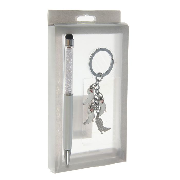 Набор подарочный 2в1 в блистере (ручка с кр.+брелок Сапожки) хром 9*16см