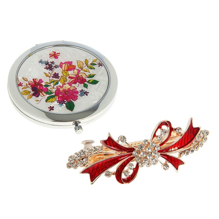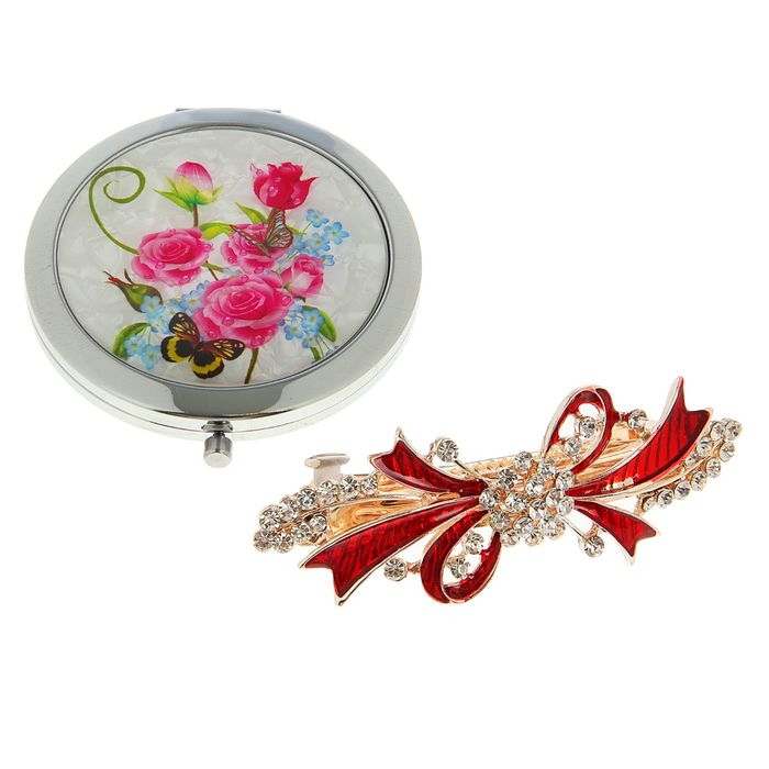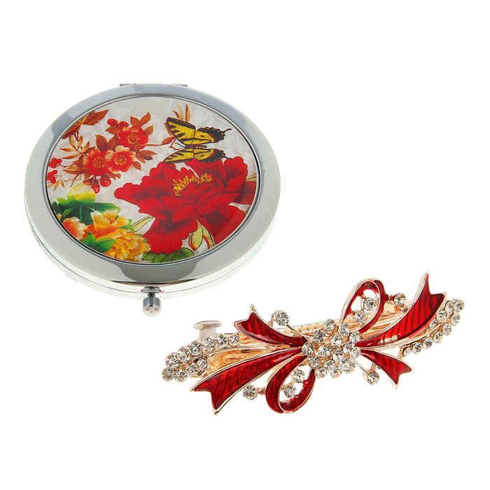Набор подарочный 2в1 в карт.коробке (заколка+зеркало) красный 9,5*15,5см, микс