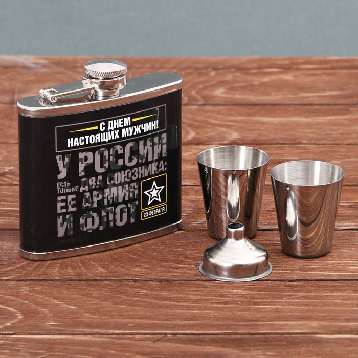 Набор подарочный "С днем настоящих мужчин", фляжка 150 мл, стопки 2 шт., воронка