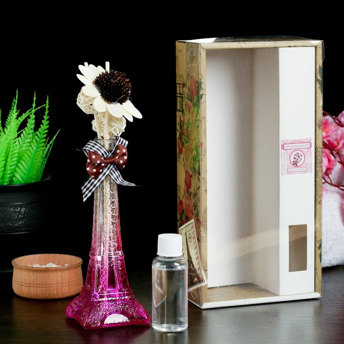 Набор подарочный"Эйфелева башня"(ваза,2 палочки с шариками,декор,аромамасло 30 мл), сакура