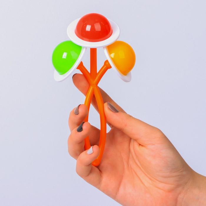 Звук в модели появляется при встряхивании. Причудливая форма надолго займёт внимание карапуза. Погремушку удобно использовать: лёгкая вещица подходит для захвата маленькими ладошками.