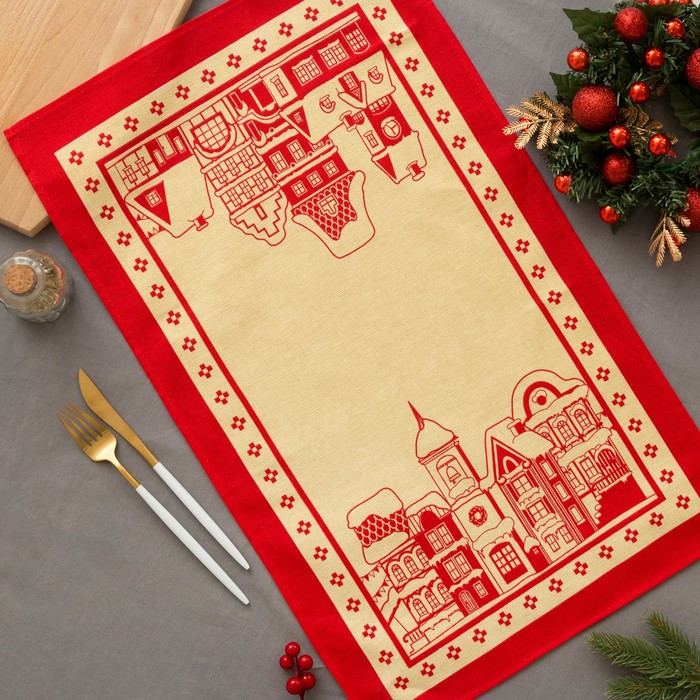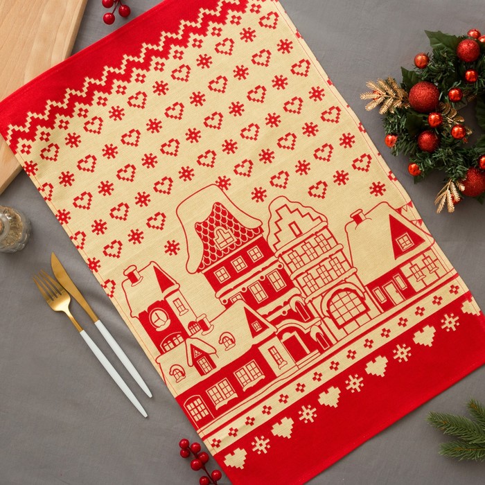 Набор полотенец "Новогодние Домики" 64 х 40 см - 2шт, 100% хл 160 г/м2, рогожка