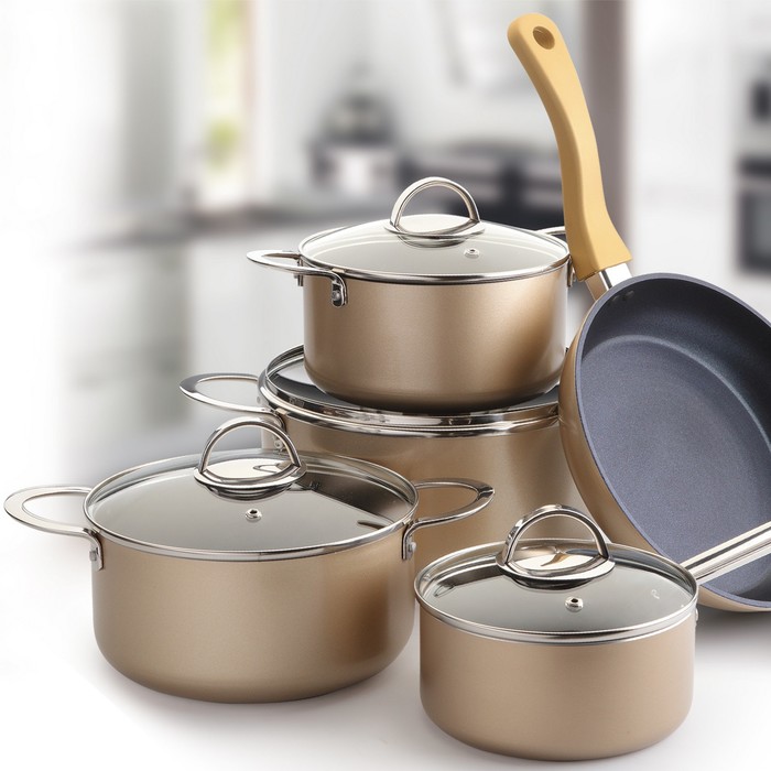 От качества посуды зависит не только вкус еды, но и здоровье человека. Набор посуды 9 предметов, алюминий — товар, соответствующий российским стандартам качества. Любой хозяйке будет приятно держать его в руках. С нашей посудой и кухонной утварью приготовление еды и сервировка стола превратятся в настоящий праздник.