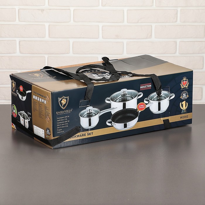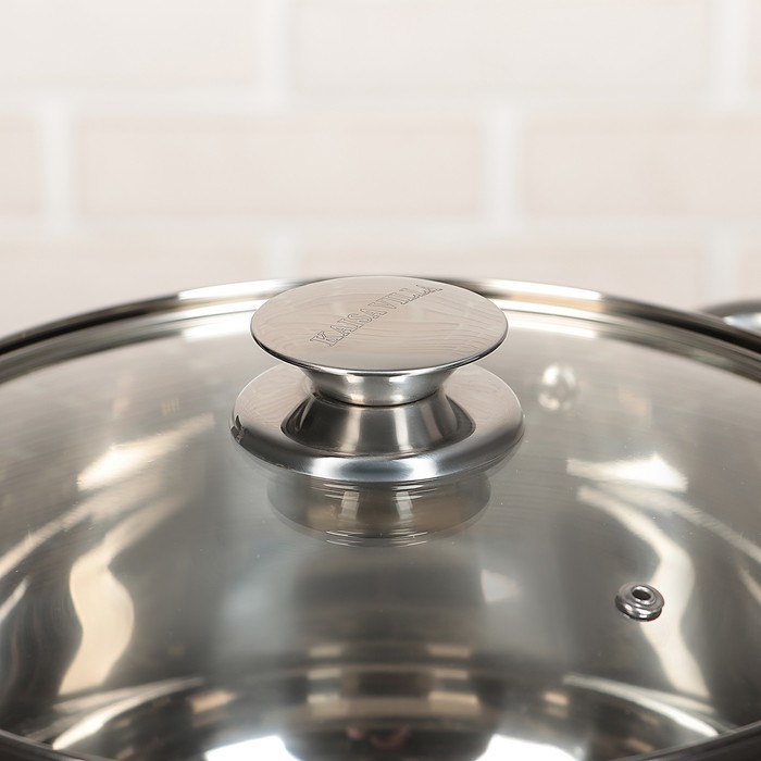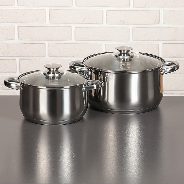 Набор посуды "Алия", 4 предмета: 2 кастрюли 3,4/5,8 л, ковш 1,9 л, сотейник с антипригарным покрытием 24х6,5 см, стеклянные крышки
