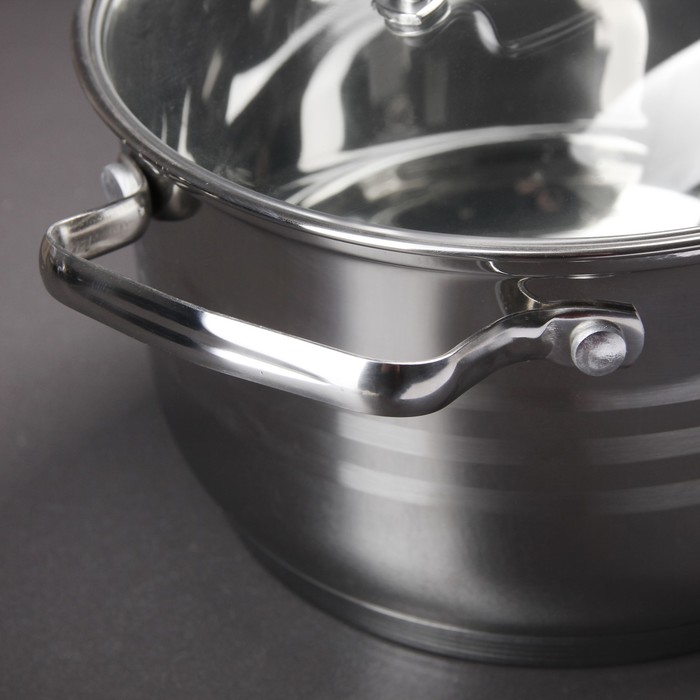 Набор посуды "Мейдлин", 6 предметов: ковш 2 л, 4 кастрюли с мерными шкалами 2/2,5/3/6 л, сковорода 25,5 см с мраморным покрытием, с крышками