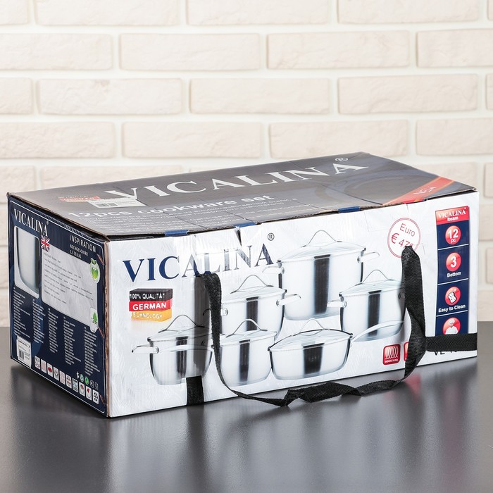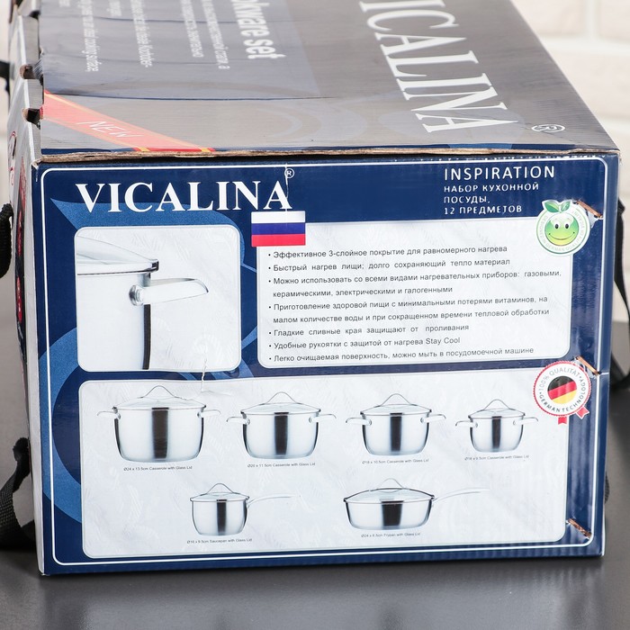 Набор посуды "Моника", 6 предметов: ковш 1,5 л, сотейник 3 л, кастрюли 1,5 л/2 л/3 л/5 л с мерными шкалами