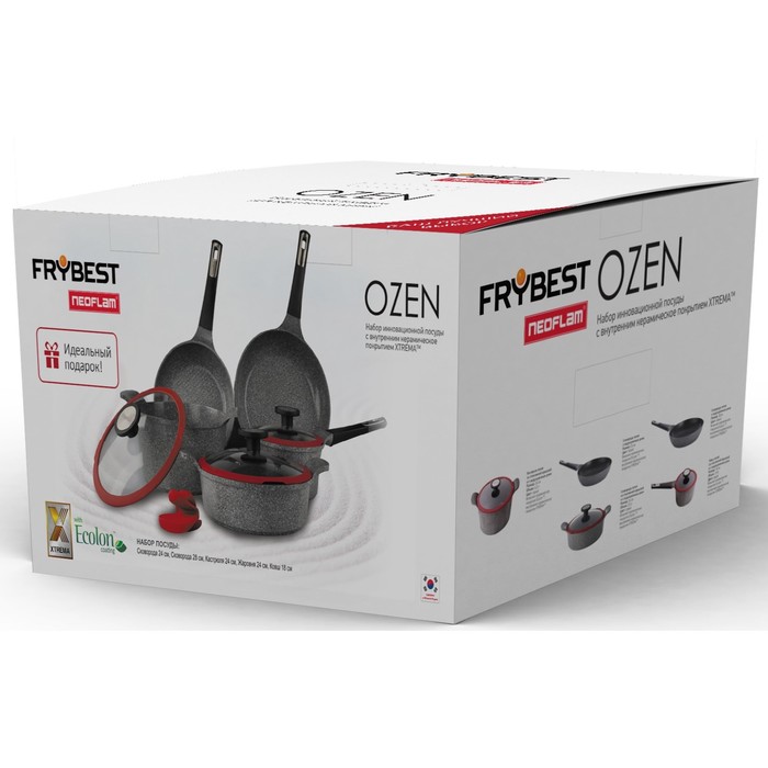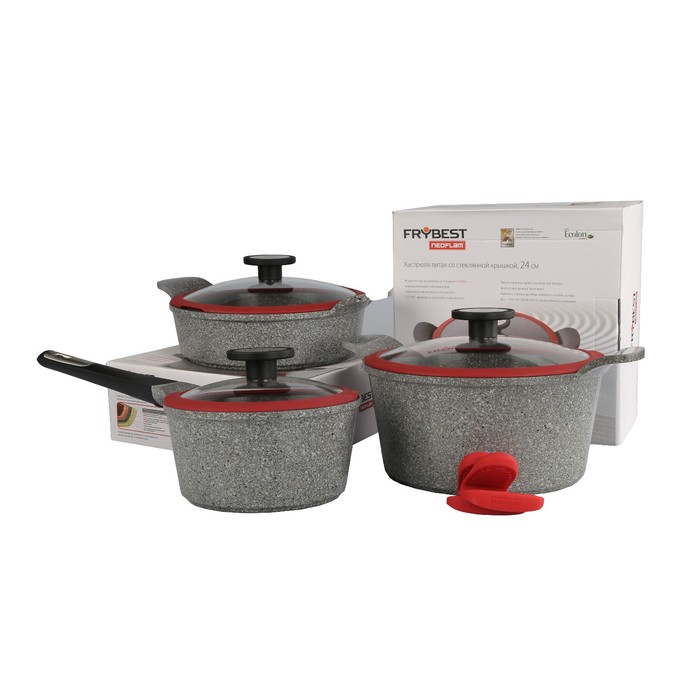 Набор посуды OZEN-N20, литой алюминий, 5 предметов + силиконовые прихватки