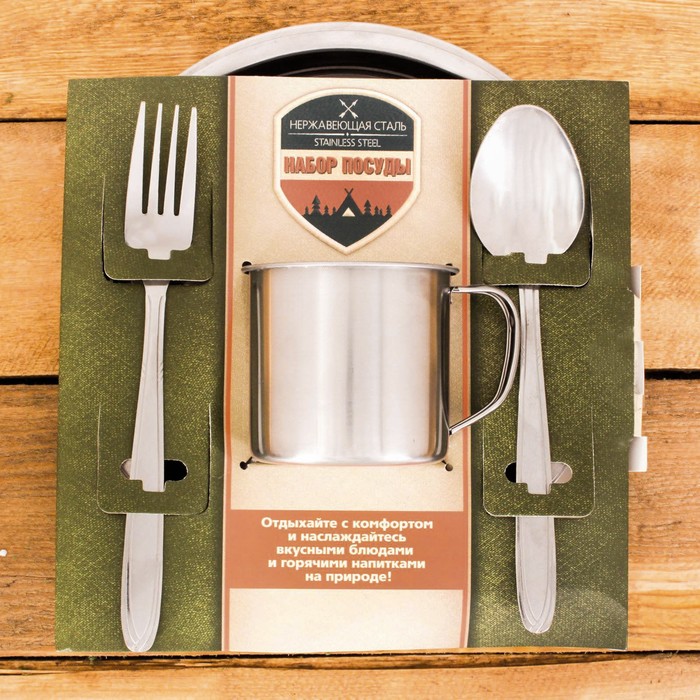 Набор посуды "Походный", ложка, вилка, кружка, тарелка 2 шт