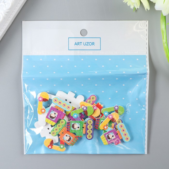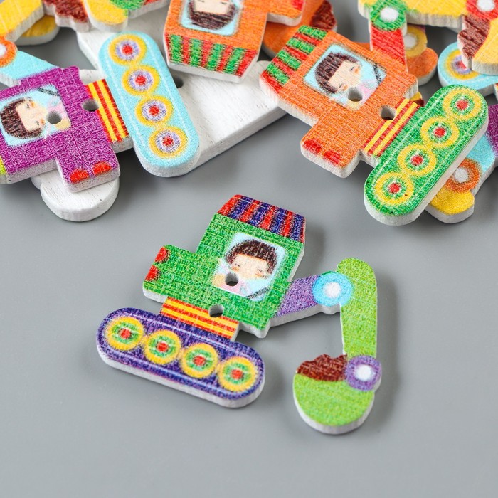 Набор пуговиц декоративных дерево "Экскаватор" набор 10 шт МИКС 3,1х2,4 см