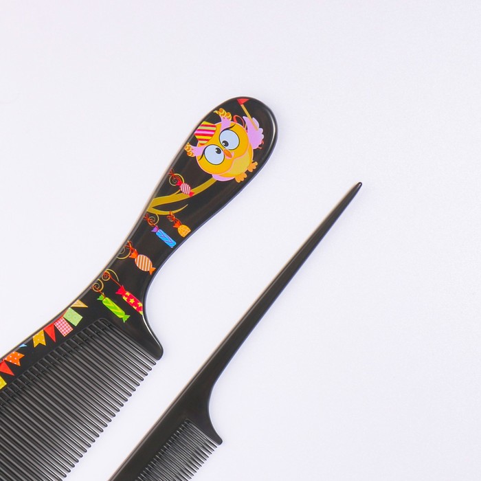 Набор расчёсок, 2 предмета: расчёска с ручкой, с хвостиком, цвет чёрный