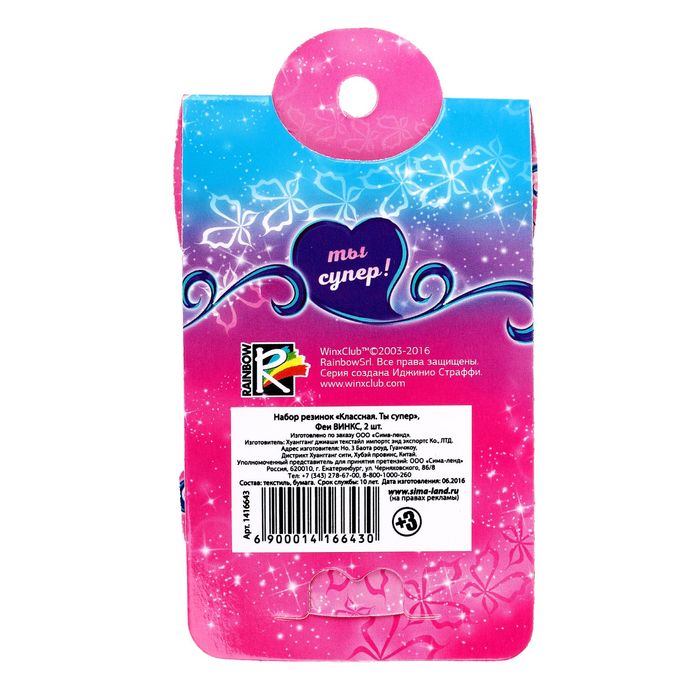 Набор резинок "Классная. Ты супер", Феи ВИНКС: Блум, 2 шт., открытка внутри