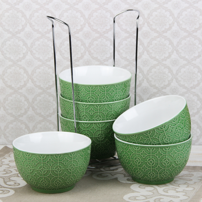 От качества посуды зависит не только вкус еды, но и здоровье человека. Набор салатников на подставке 550 мл "Акварель", 6 шт, цвет зеленый — товар, соответствующий российским стандартам качества. Любой хозяйке будет приятно держать его в руках. С нашей посудой и кухонной утварью приготовление еды и сервировка стола превратятся в настоящий праздник.
