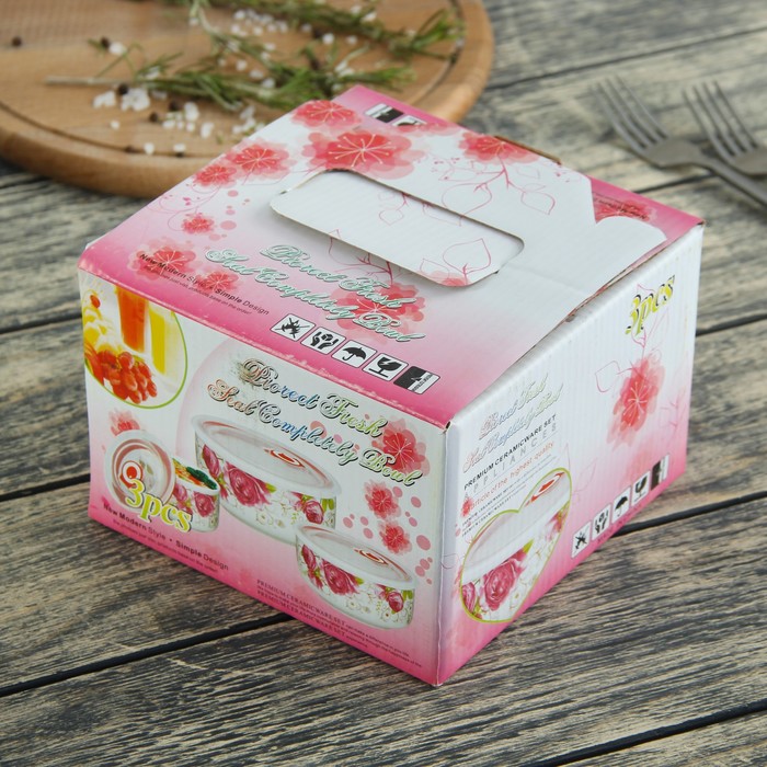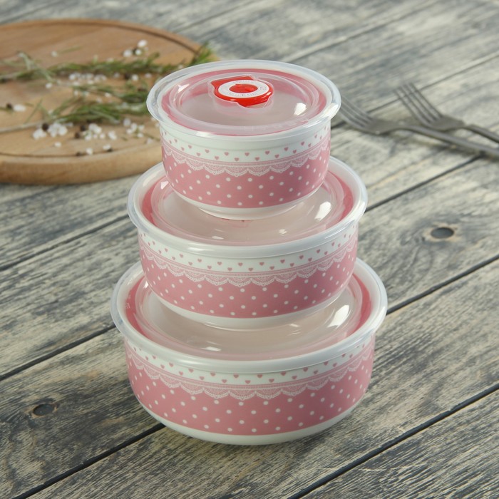 Набор салатников "Розалия", 3 шт: 300 мл, 600 мл, 900 мл, с крышками, цвет розовый