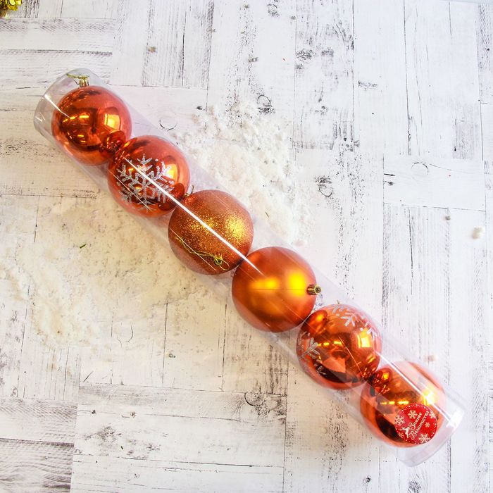 Набор шаров пластик d-10 см 6 шт "Снежинка капель" в тубе оранж
