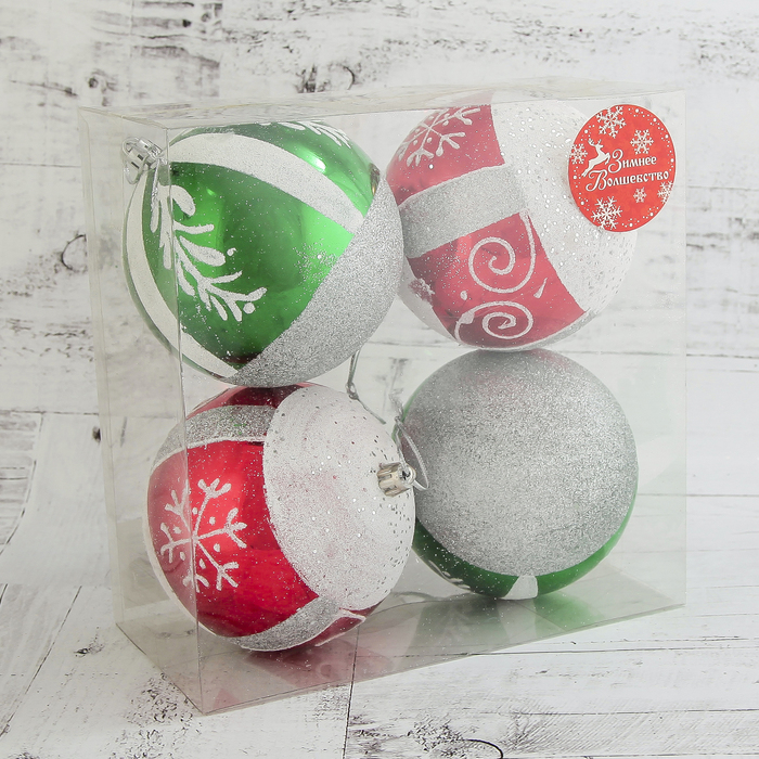 Невозможно представить нашу жизнь без праздников! Мы всегда ждём их и предвкушаем, обдумываем, как проведём памятный день, тщательно выбираем подарки и аксессуары, ведь именно они создают и поддерживают торжественный настрой. Набор шаров пластик d-10 см (набор 4 шт) снежинка блеск красно зеленый — это отличный выбор, который привнесёт атмосферу праздника в ваш дом!