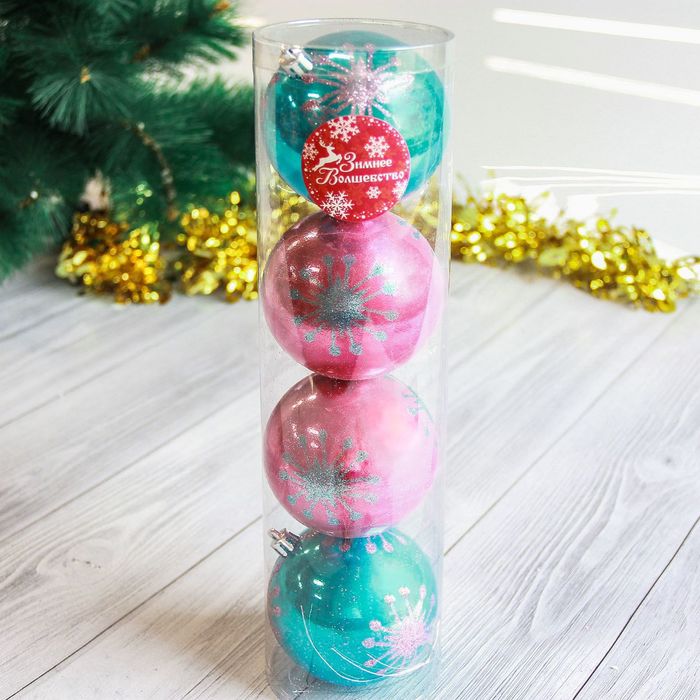 Набор шаров пластик d-8 см 4 шт звезды сине розовый