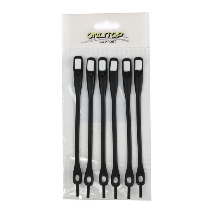 Набор силиконовых шнурков, 6шт, с плоским сечением, на застёжке, 6мм, 12см, цвет чёрный