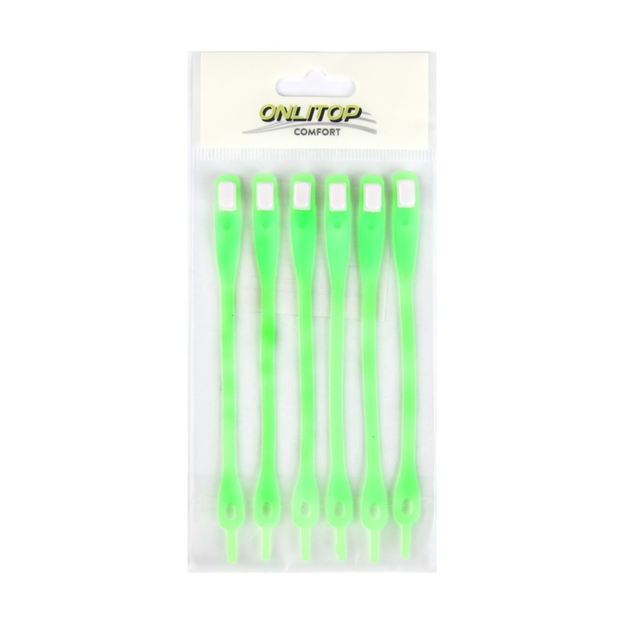 Набор силиконовых шнурков, 6шт, с плоским сечением, на застёжке, 6мм, 12см, цвет салатовый